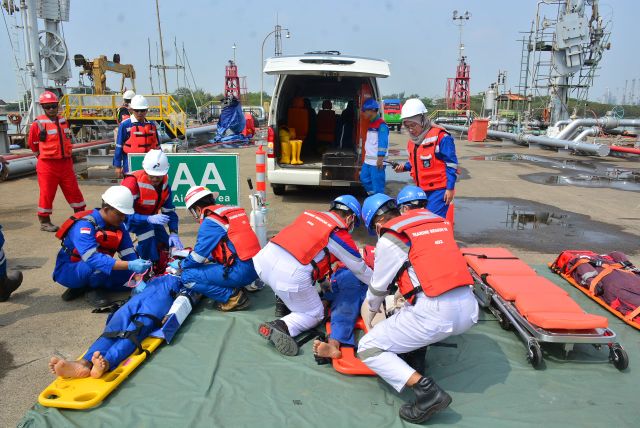 “Latihan emergency drill merupakan salah satu program yang dilaksanakan bersama selain program seperti peninjauan lingkungan maupun koordinasi yang kesemuanya dilakukan untuk mendukung agar kegiatan eksplorasi, produksi, dan distribusi dapat berlangsung dengan lancar”, terang Nur Muhammad.