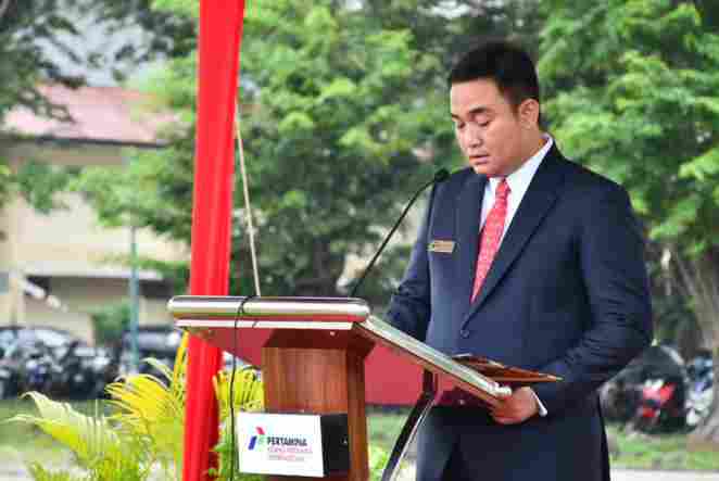 Prosesi upacara yang merupakan momen kebangkitan nasionalisme di kalangan pemuda Indonesia ini, dipimpin oleh Lettu Arm Harun Bayauw Naak, dengan General Manager PT Kilang Pertamina Internasional (KPI) RU VI Balongan, Yulianto Triwibowo, sebagai pembina upacara.