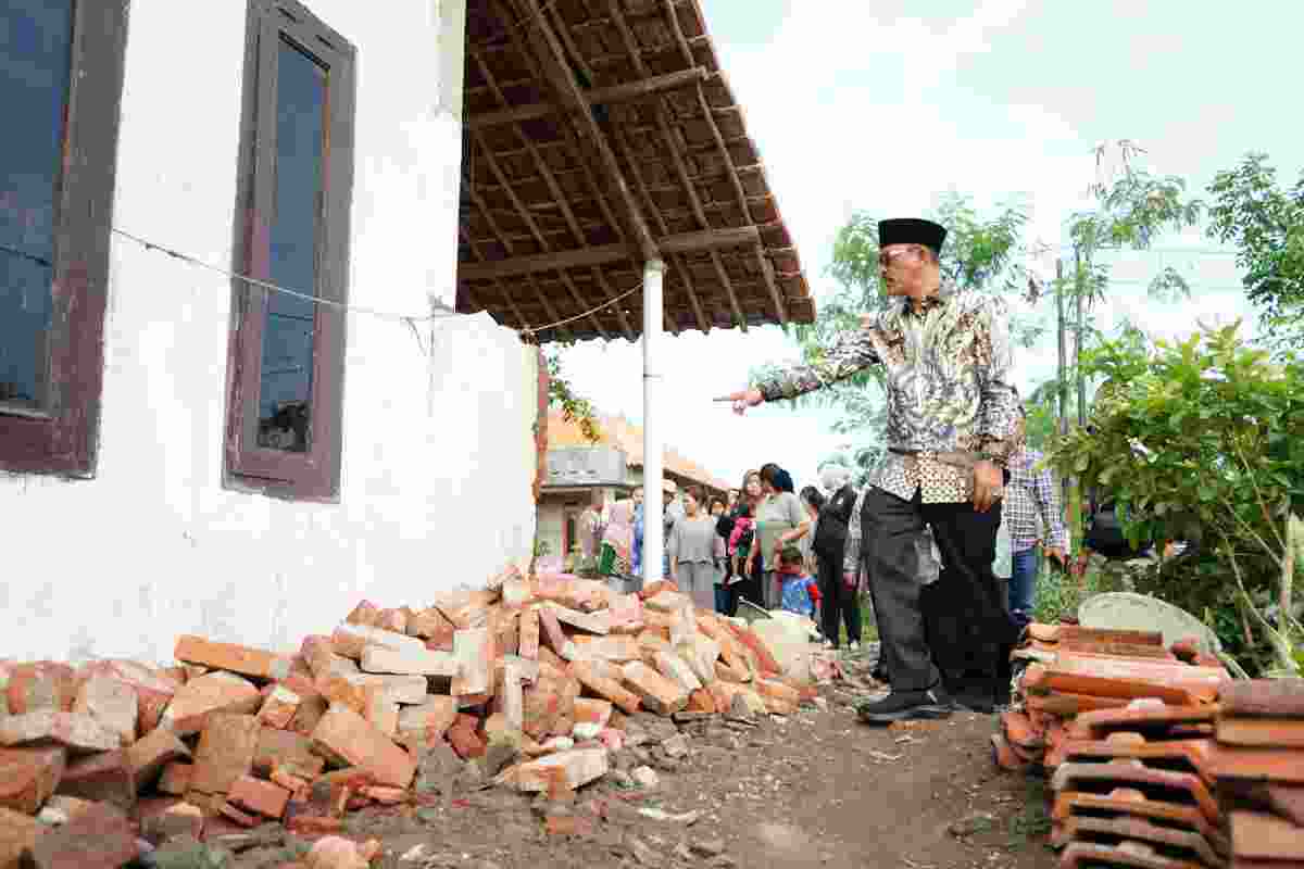 Setelah menyerahkan bantuan secara simbolis di Balai Desa Totoran, Wakil Bupati Indramayu meninjau langsung rumah-rumah yang terdampak. Dia juga berbincang dengan warga yang menjadi korban sebagai bentuk kepedulian.