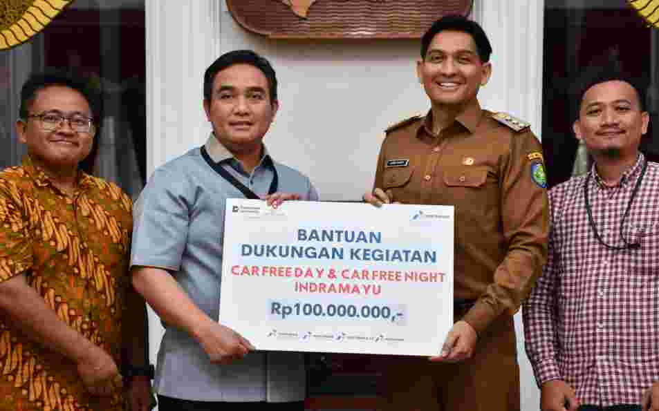 INDRAMAYU,Infojabar.co.id | Kepedulian perusahaan pengelolah Migas, Kilang Pertamina Balongan bersama Pertamina Group wilayah Indramayu menyalurkan bantuan total 100 Juta Rupiah guna mendukung program kegiatan Car Free Night dan Car Free Day yang digelar pemerintah Kabupaten Indramayu untuk masyarakat.