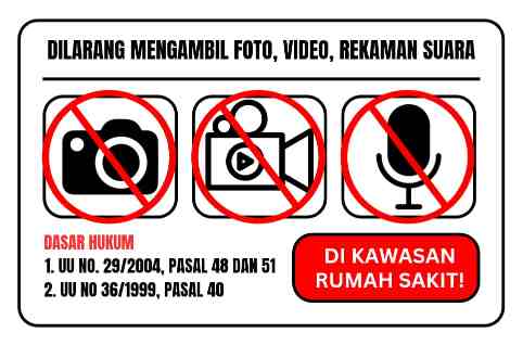 Infojabar.co.id | Opini – Kerap ditemui di dinding maupun di tembok rumah sakit tulisan “Dilarang Untuk Mengambil Gambar/Foto/Video di Area Rumah Sakit” selanjutnya dalam tulisan imbauan tersebut mencantumkan regulasi, seperti: